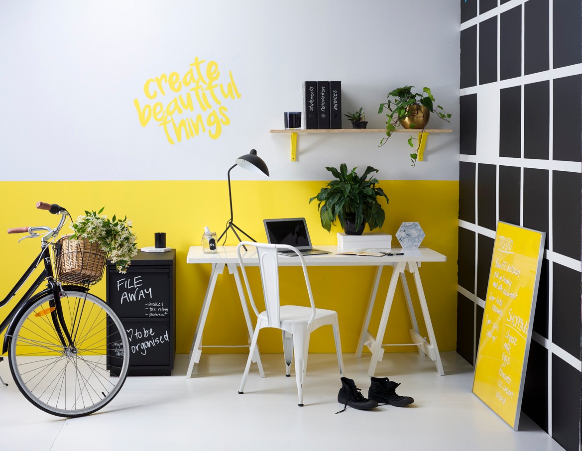 You can play up the colour with plenty of clean lines and furniture with strong silhouettes. In order to celebrate the colour but avoid overdoing the space, pair yellow with white and black, for a sophisticated feel.